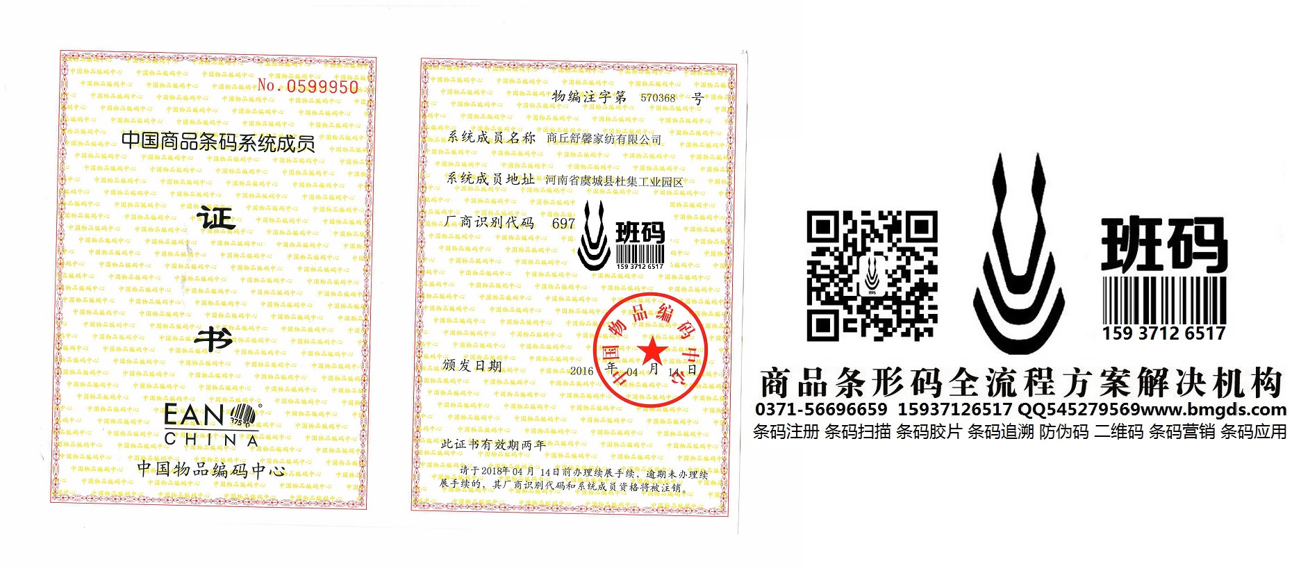 上海条码登记产品