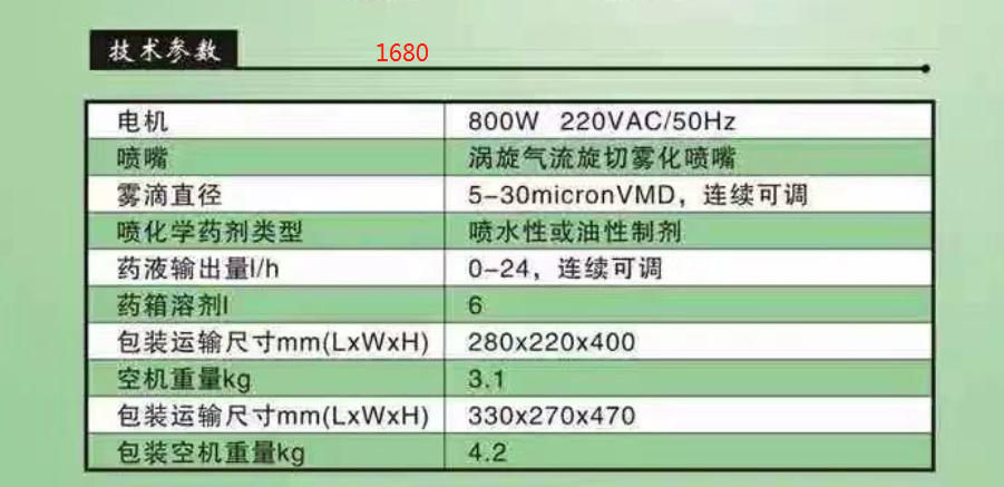 技术参数 1680