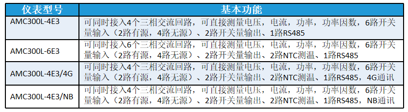 AMC300L交流多回路智能电量采集监控装置主要用于多个回路的全电参量测量,最多可同时接入6个三相回路或者18个单相回路的电流输入。可测量电压电流、功率、功率因数等参数。
