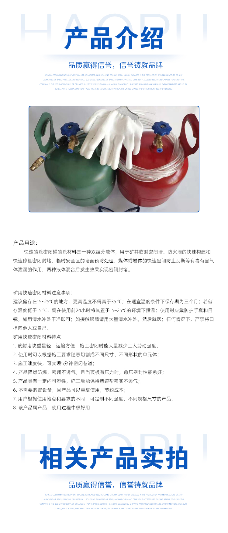 | 用途范围 | 矿井临时密闭墙、防火墙的快速构建 | ||