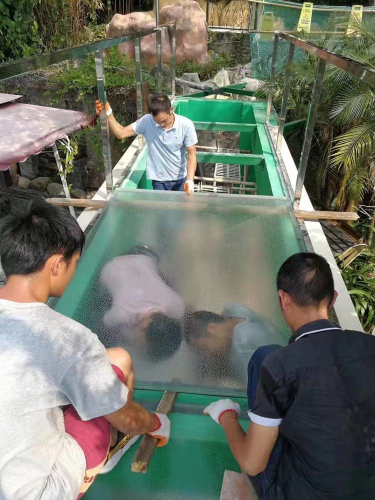 防滑玻璃地板是一种具有优越性能及安全性的创新地板材料,它是通过采用多夹层工艺加工而成的,上片采用钢化玻璃,表面涂有特殊的防滑膜层(NSS)