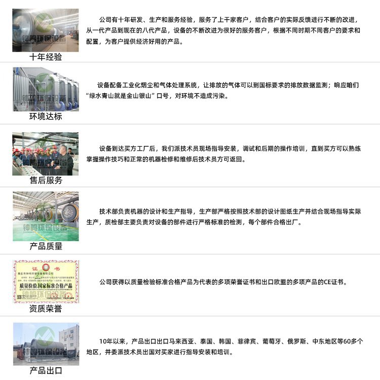 我公司是一家生产废轮胎炼油设备的现代化管理企业,生产过程中,采取现代化的管理模式,在产品质量上不断向高层次迈进,本公司有产品研发人员、工程师、技术员组成的开发团队,本公司通过了ISO9001、ISO4001质量和环境体系,长期致力于对产品的开发和研究,把质量和服务做好。