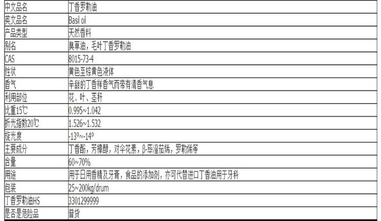 | 产品名称 | 丁香罗勒油 |
