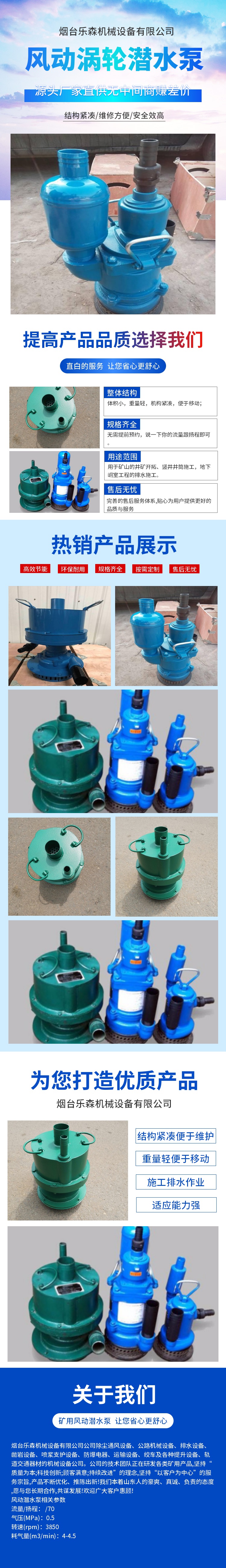 • 规格:风动涡轮潜水泵