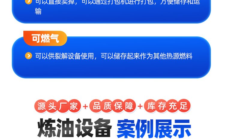 | 工作原理 | 将原料装进隔氧炉内加热,使其裂解产生高温燃料油气、再经精馏、冷凝等工序生产出燃料油,工艺简单,出油率高,可稳定在45%~60%,最高达80%,产品符合国家相关标准; | ||