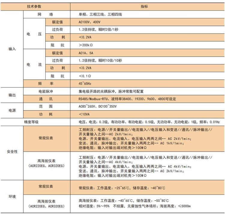| 准确度 | 电压、电流:0.2级,有功功率、有功电能:0.5级,无功功率、无功电能:1级,频率:0.01Hz | ||