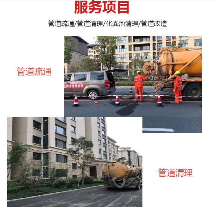 1、市政管道:备有大型机械,疏通各种主管道、市政管道疏通及其他大型下水道疏通。