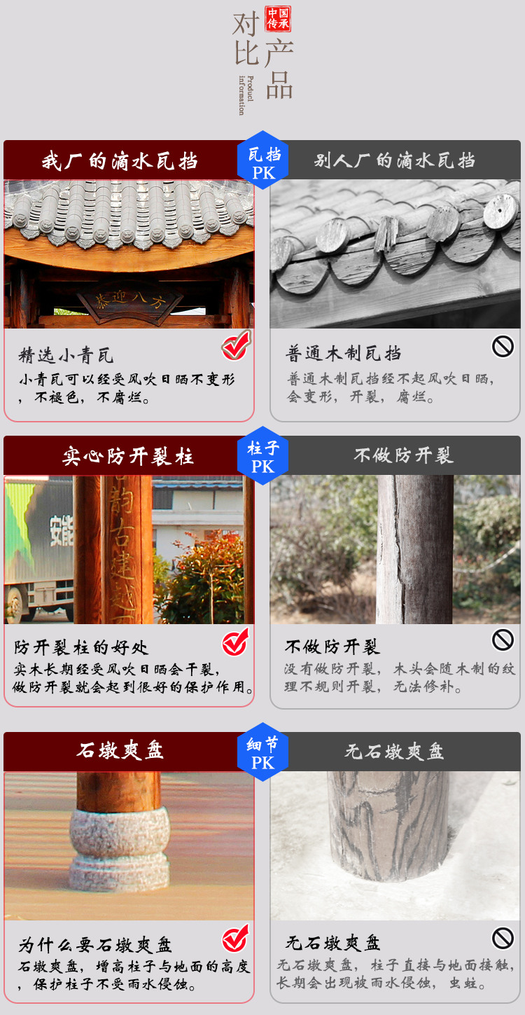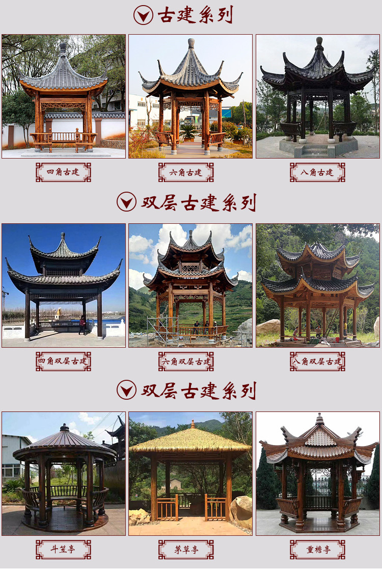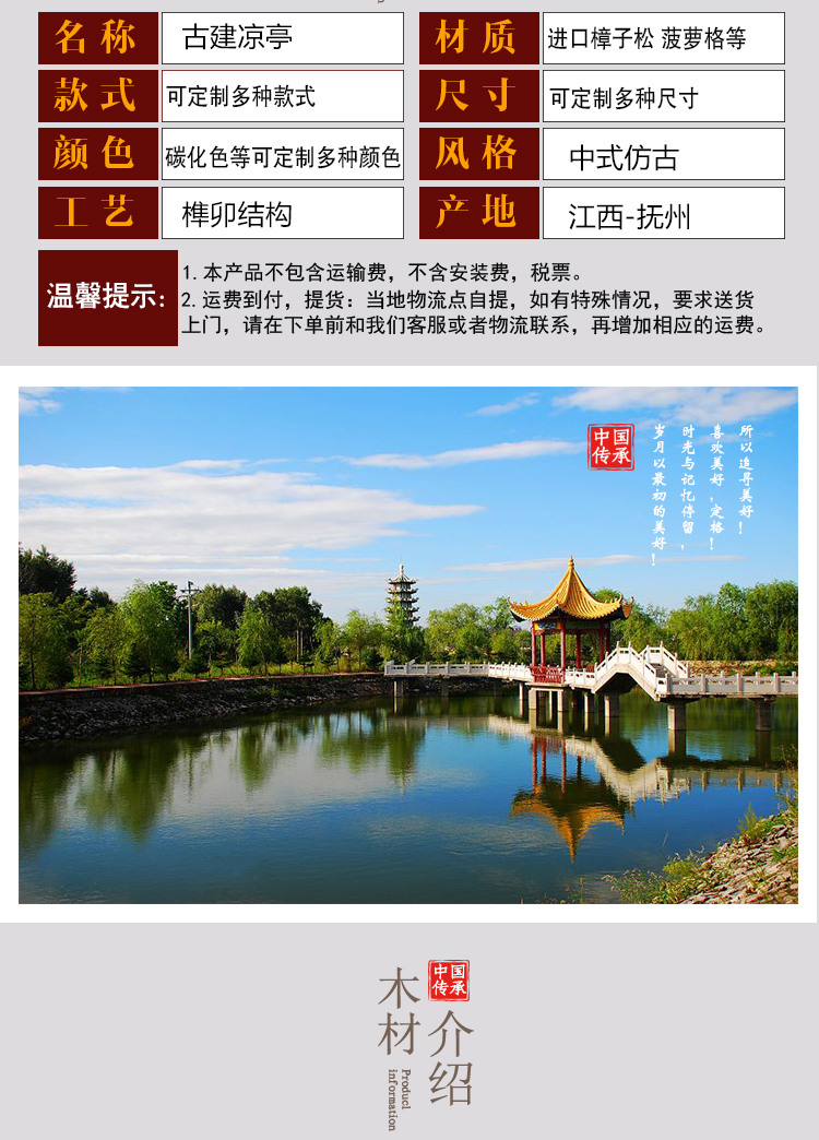 江西共盈家具有限公司是一家专业的古建筑户外凉亭生产企业。公司位于“物华天宝,人杰地灵”的江西省抚州;公司拥有多位大型古建筑与木雕设计师和大批技艺精湛的能工巧匠。公司主营古建凉亭、长廊、碳化木凉亭,欧式木屋。酒柜吧台等园艺配套用品。秉承传统木作工艺,结合现代精雕细琢的工匠创意,使创作的每件产品都才华洋溢、个性鲜明,具有古朴雅典的艺术气息,真正做到天然实木,自然品质,绿色环保。