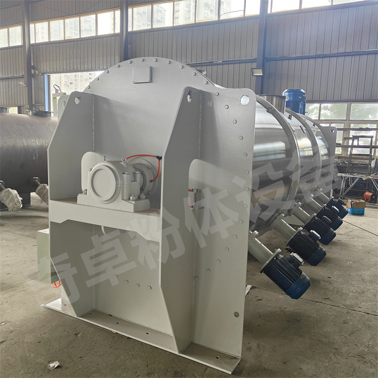 主要由传动部分、卧式筒体、犁刀组轴、粉粹器组、出料阀、喷液装置等部件组成。