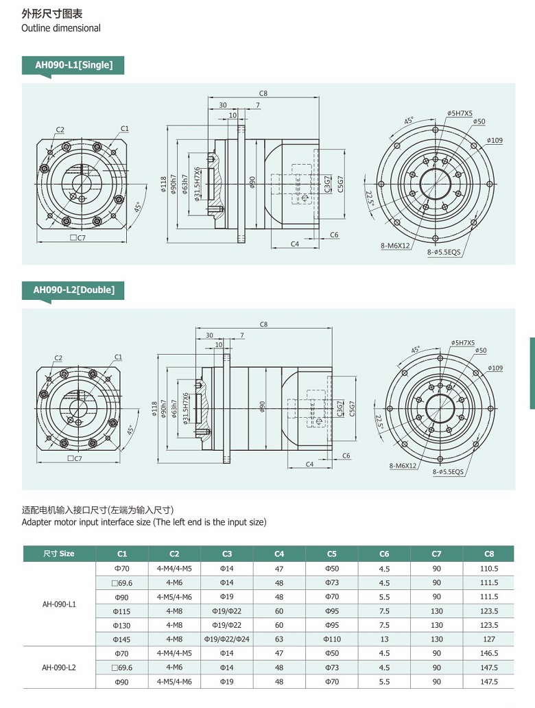 | 规格 | AH90行星减速机mm | ||