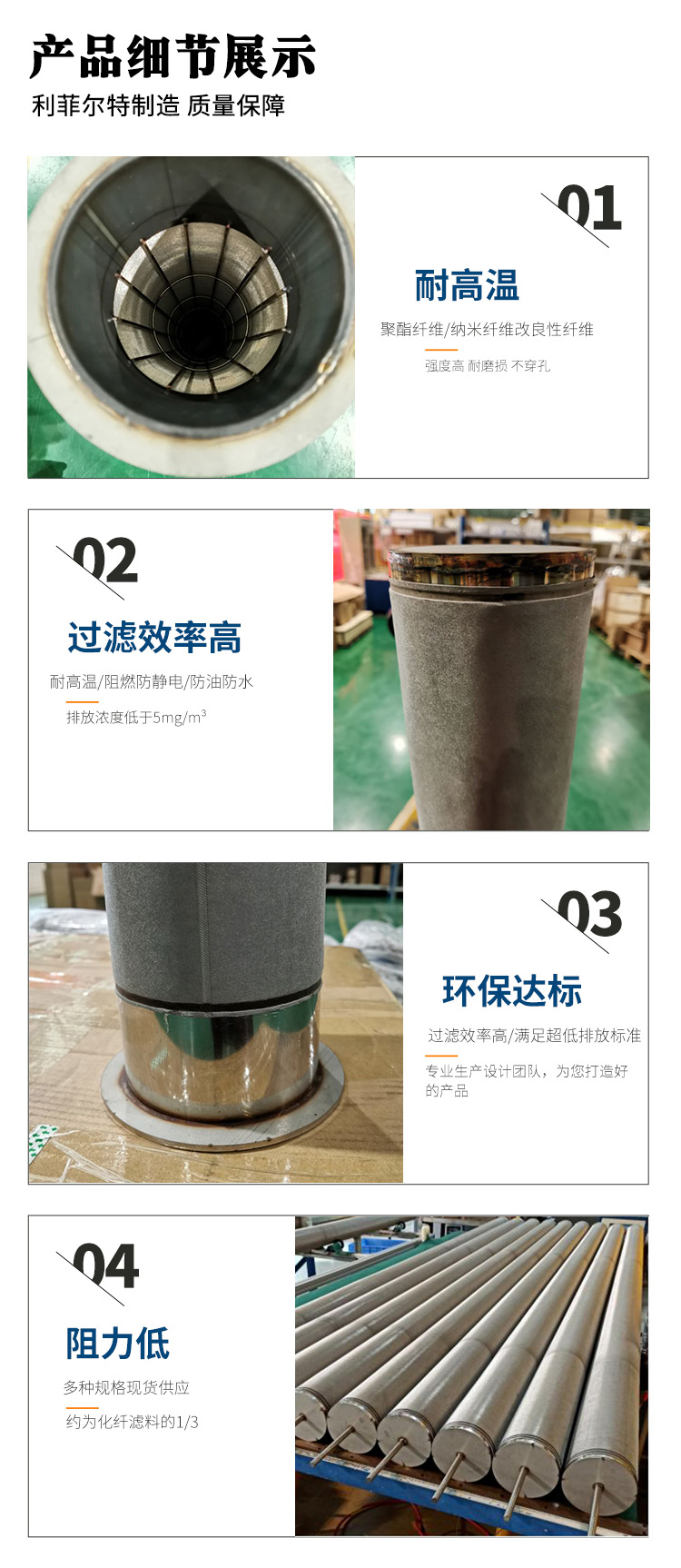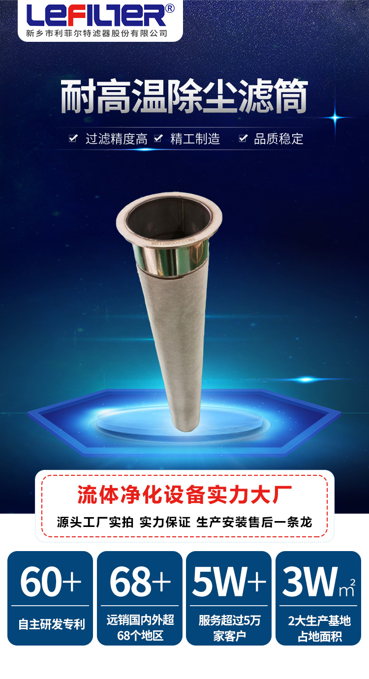 利菲尔特高温除尘不锈钢金属滤筒代替无纺布滤袋高透气