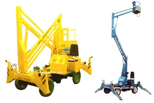折臂式升降平台,移动方便,折臂结构紧凑,采用新型优质型钢,强度高、重量轻、直接接入交流电或采用本身直流电源启动,架设速度快,