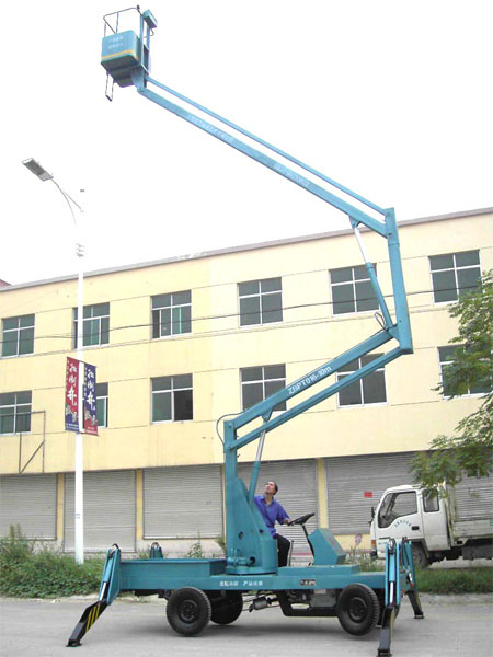 山东牛斗重工生产的自行曲臂式升降机是可跨越障碍进行高空作业的绝佳高空作业设备。 曲臂式升降机:不用外接电源,适合野外高空架设作业,用柴油机或者蓄电池为动力驱动行走及升降。自支腿,自升降,自行走的优质性能以及在高空作业时,即能跨越一个障碍同时还能360度旋转作业工作;控制系统为上、下双向操作。这样就大大方便了维修工作人员,节省了工作时间。同时本款产品还装有液压锁保护装置(即使在机械出现故障或柴油机没油的情况下,也不会突然下降,带来安全隐患)自行曲臂式升降机以其移动灵活迅速,操作简单,作业范广的优势,广泛用于城建、油田、交通、市政、室外广告等行业。 曲臂式升降机全身包含了多项专利,整个升降、移动操作过程完全可以通过平台上的控制按钮进行,升起高度从10米到30米不等。牛斗机械当时就是看重了我们领先的专利和品种齐全的产品,可以满足他们的多项需求。 随着当下曲臂式升降机越来越多,从简单更换一个路灯到组装飞机、轮船等大型设备,几乎每个行业都需要这种移动伸缩式升降设备,整个行业需求正呈现高速增长的状态。“像江南造船厂、济南奥体中心工程用的都是牛斗重工机械的升降平台,北京奥运会我们中标了48台。”,美国、加拿大、意大利、德国等出口市场同样火爆,上半年公司订单十分充足。 曲臂式升降机 曲臂式升降机是用于高空作业的升降设备,可跨越障碍进行高空作业,平台升降到任何位置时,均可边行走边作业,结构紧凑,转向灵活,其地盘的宽度可保证设备进入狭窄的通道及拥挤的工作区域.且曲臂式升降机有柴油自行式,拖车式,手拉式,电瓶式等.