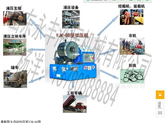 液压机械、焊割设备等行业。该压管机是在压力作用下使金属接头产生变形,从而平稳地扣压在胶管上的专用设备、