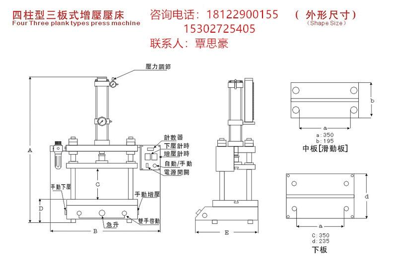 供应1T 2T 3T 5T 10T气动增压机,四柱两板气动增压机产品描述: