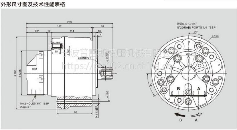 5、该系列液压马达压力高,最高压力可达45MP。重量轻、体积小、比功率高。