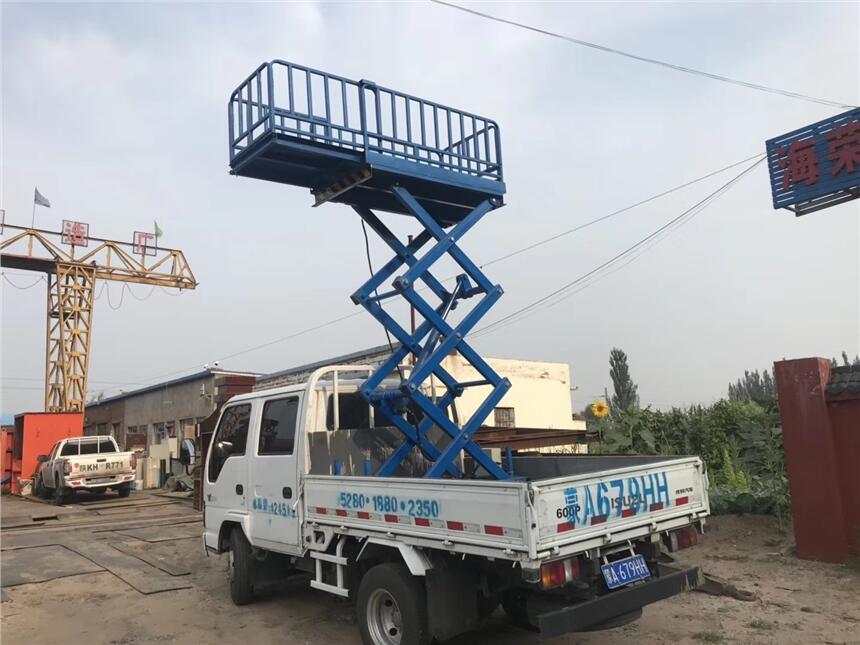 车载式升降平台是为提高升降平台的机动性,将升降平台固定在电瓶搬运车或货车上,它接取汽车引擎动力,实现车载式升降平台的升降功能。以适应厂区内外的高空作业。广泛应用于宾馆、大厦、机场、车站、体育场、车间、仓库等场所的高空作业;也可作为临时性的高空照明、广告宣传等