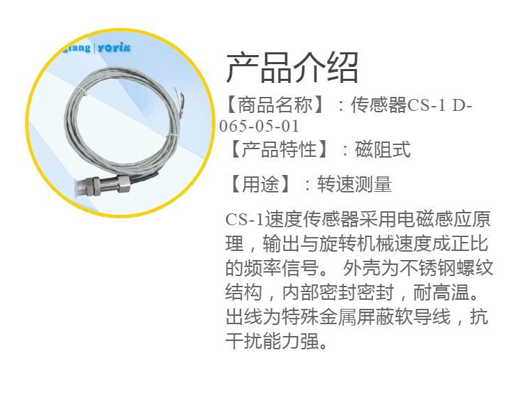 | 转速传感器CS-1 D-065-05-01 东方一力/YOYIK高阻探头测量转速 品牌 | 东方一力 | ||