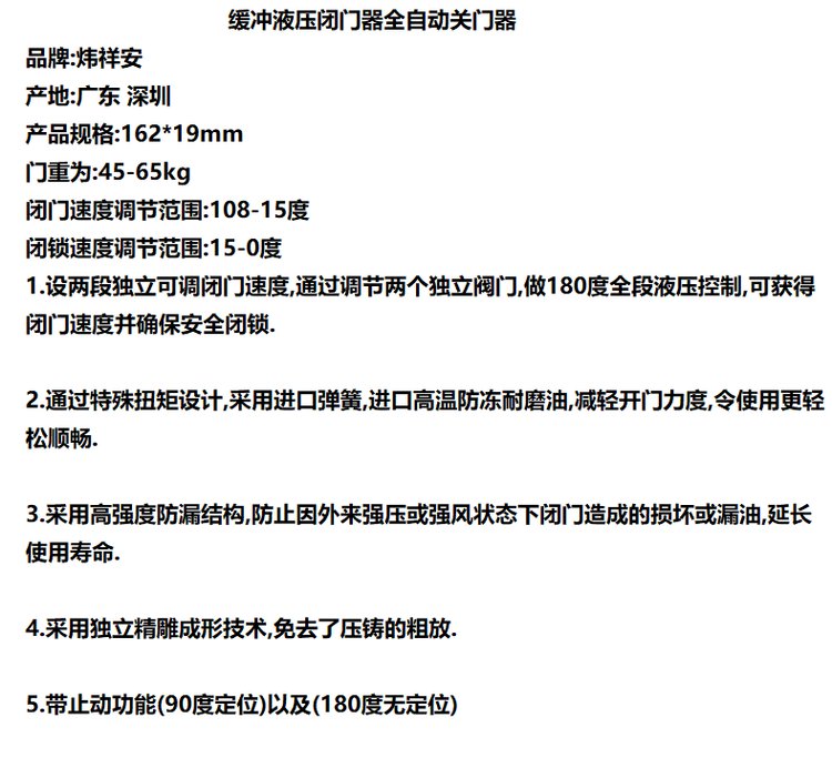 | 类型 | 缓冲液压闭门器 | ||