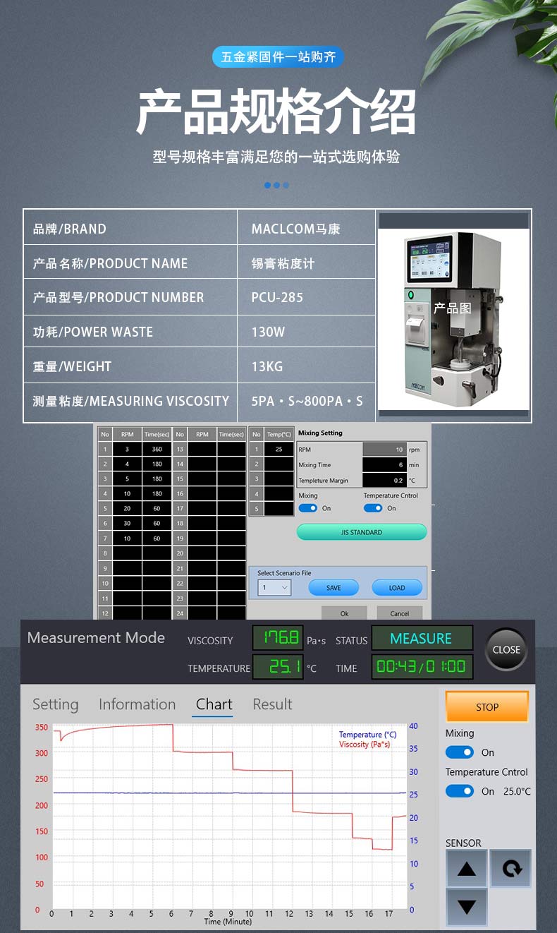| 规格 | 锡膏粘度计 | ||