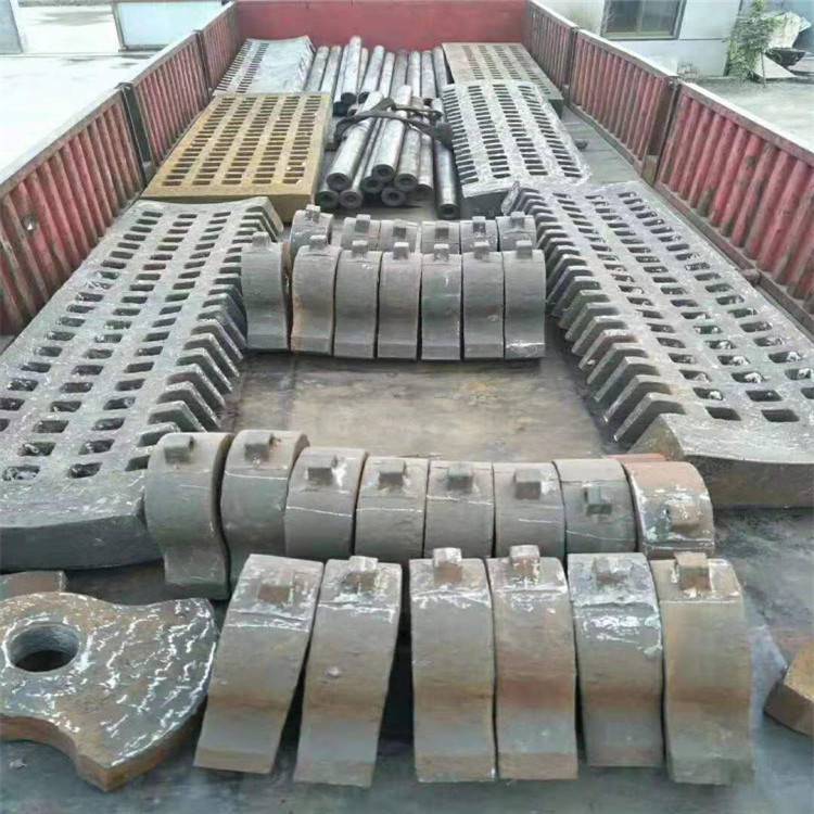高锰钢仍是锤头传统材质,经多年使用观察发现高锰钢锤头并不耐磨,使用寿命短,破碎石灰石的锤头一般可工作2-3个月,但是在有些工况条件下,使用不还到一个星期。高猛钢锤头之所以不耐磨,一是锤头的磨损是以冲刷磨损为主,二是锤式破碎机的锤头在运转过程中所受的冲击力并不大,使高锰钢的锤头加工硬化效果不显着。锤头的重量越大,所受的冲击力越大,其强化效果越显着。因此,作为大型锤头的材质,强化高锰钢仍是可供选择的材质。加入Cr的强化高锰钢锤头,在破碎铁矿石时,锤头的使用寿命比普通高锰钢提高50,另外也可采用含锰量为17-19的超高锰钢,同时增加Cr、Mo等元素,提高屈服强度和初始硬度等性能,在实际生产中也得到了较好的使用效果。