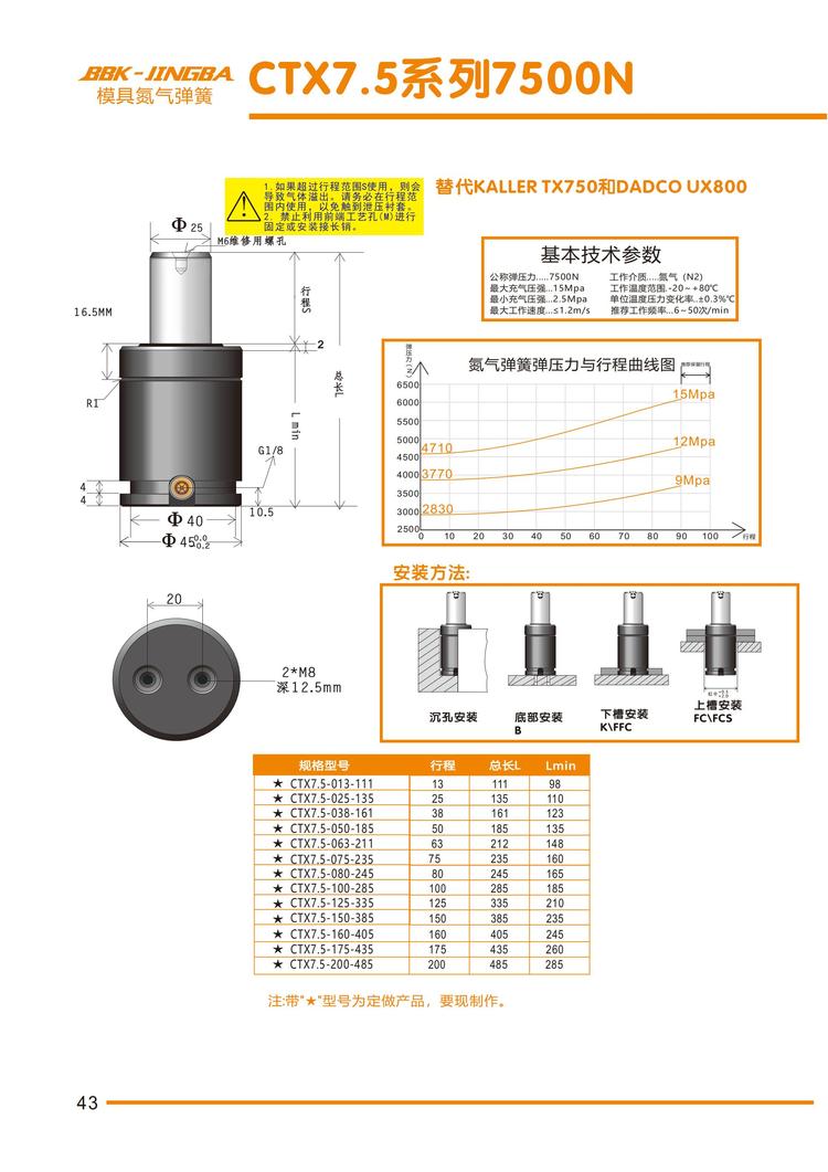 | BBK-JINGBA 非标定制行程 合金钢材质 汽车零部件模具氮气缸TX/CTX750 品牌 | 贝贝康 | ||