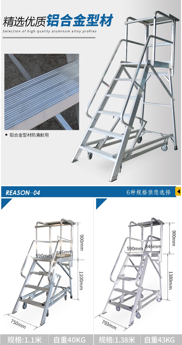 | 产品名称 | 铝合金移动登高梯 | ||