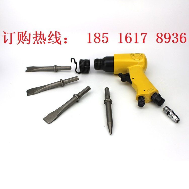 金属类管道或容器上的焊缝出现泄露,使用本品压按在泄露部位,利用压缩空气或钢瓶氮气做气源来推动产生高频振荡,达到捻缝堵漏之目的,标配包括四铁铲和一铜铲,尖铲及扁铲规格1.02cm*17.5cm ;