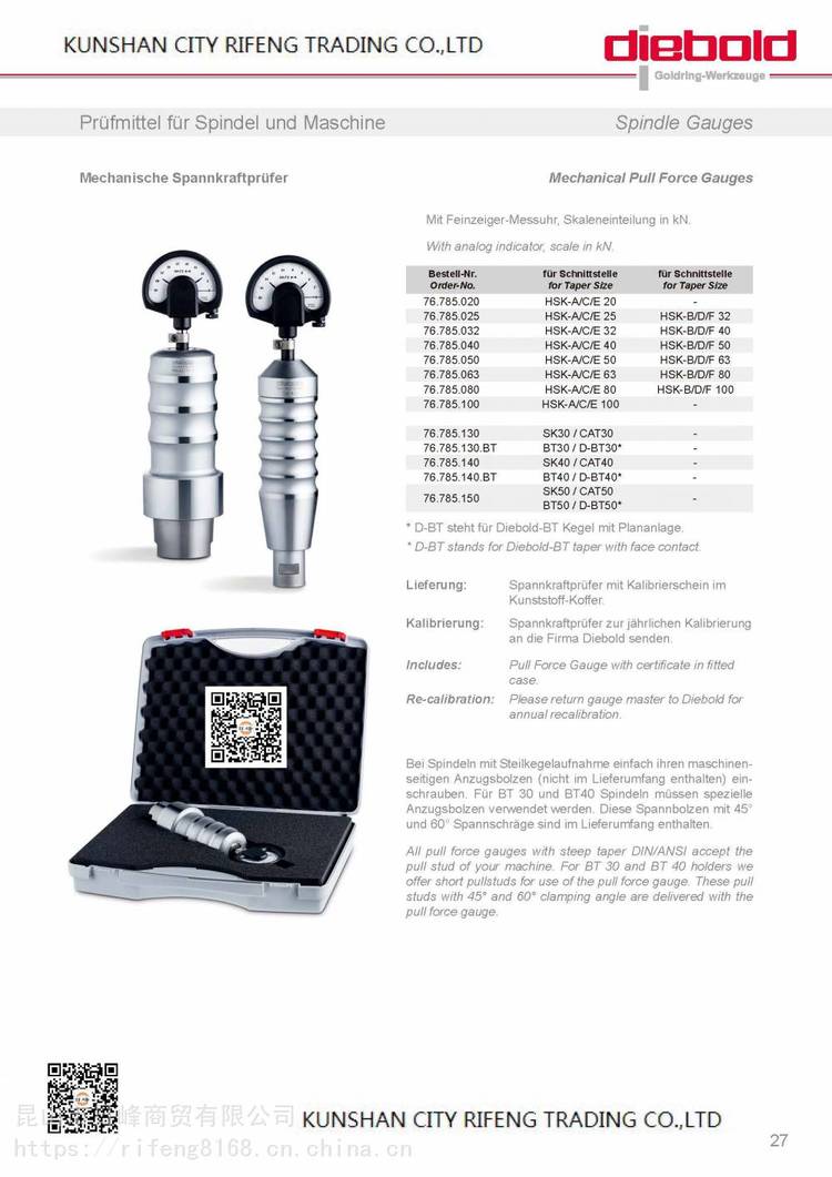 | Diebold主轴测力计HSK-A/C/E100电主轴使用 品牌 | 丸荣 | ||