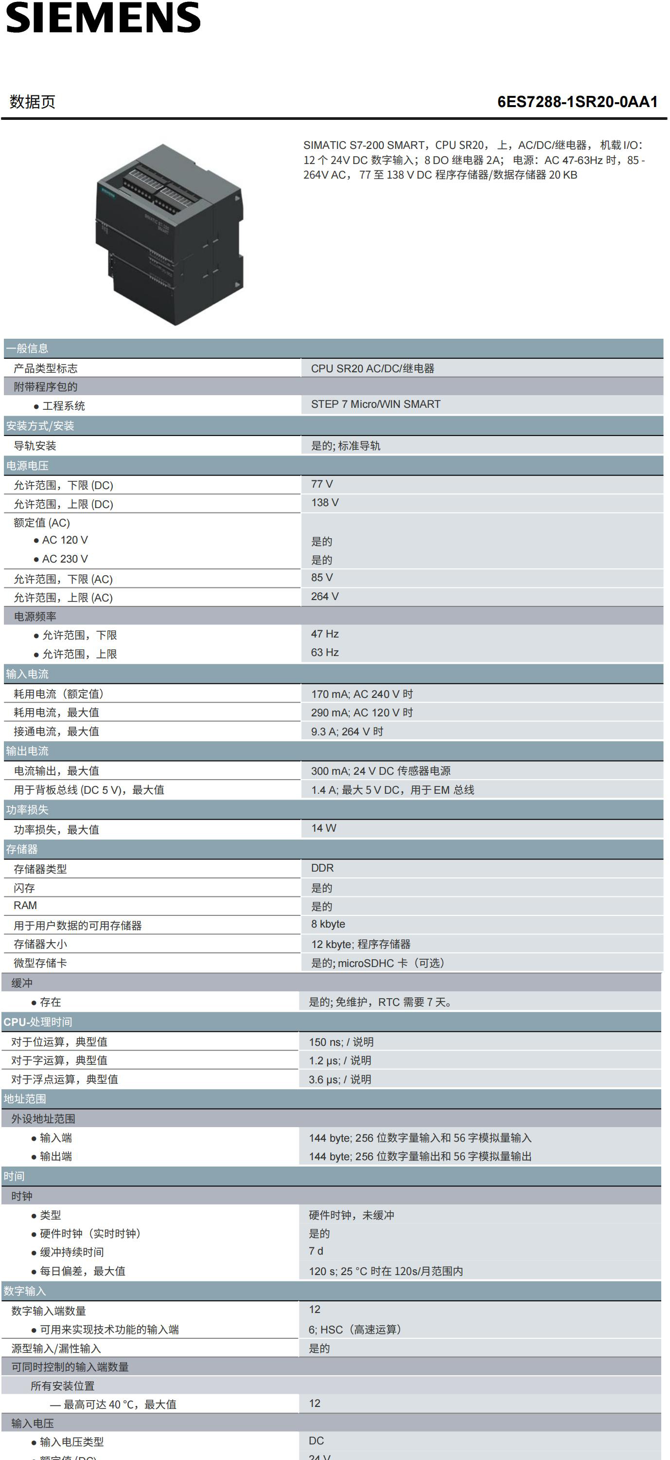 | 6ES7288-1SR20-0AA0/0AA1西门子S7-200 SMART CPU SR20继电器输出 型号 | 6ES7288-1SR20-0AA0/0AA1 | ||