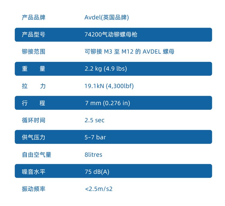avdel铆螺母枪74200气动拉铆螺母枪维修改装