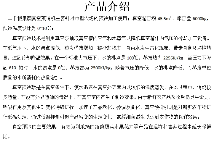 | 产品用途 | 果蔬预冷保鲜 | ||