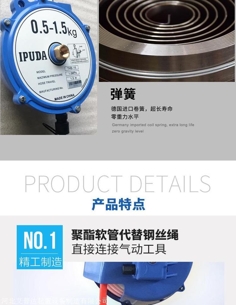 弹簧平衡器适用于流水线上悬挂手动工具,如气动扳手,电动工具等,有效减轻工人劳动力,平衡器载荷小的0.5kg,高可达200kg。
