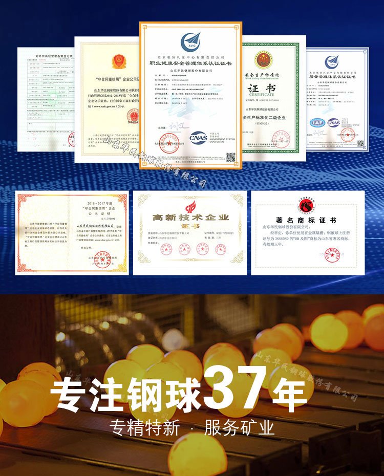| 适用范围 | 开采、研磨、 矿山用高低铬锻造研磨钢球 | ||