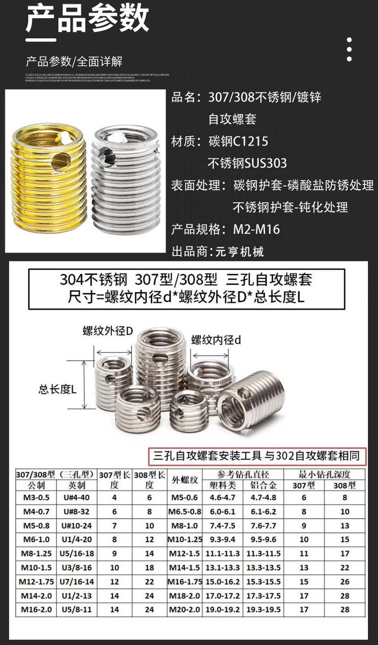 | 类型 | 自攻螺套 | ||