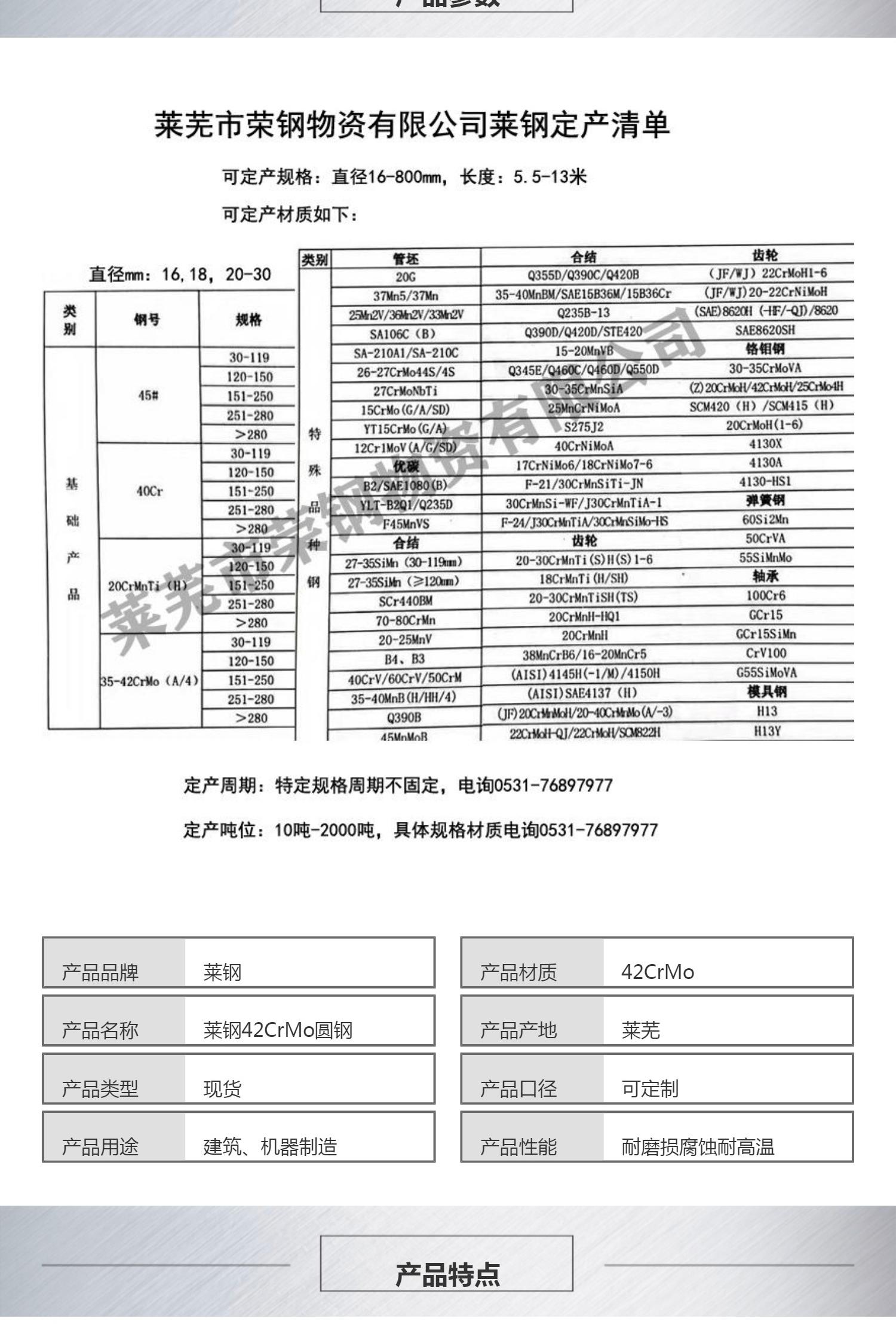莱钢42CrMo圆钢大小规格直径16-800mm现货供应莱芜钢城区提货