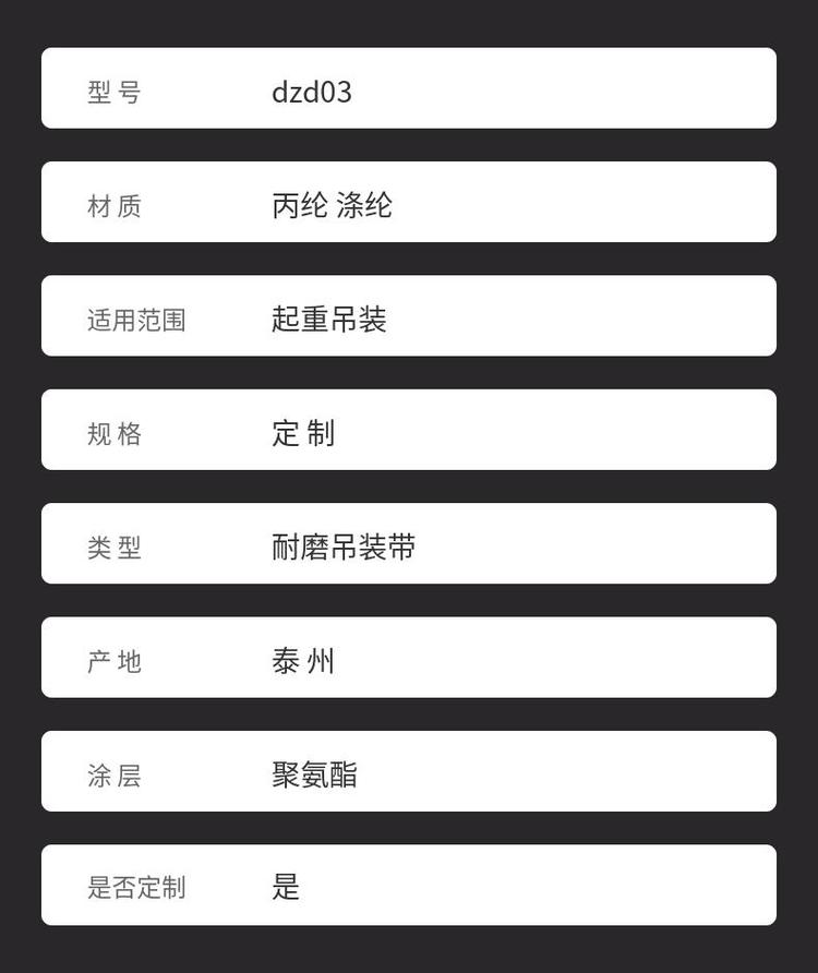 | 特点 | 耐磨 表面光滑保护被吊物 | ||