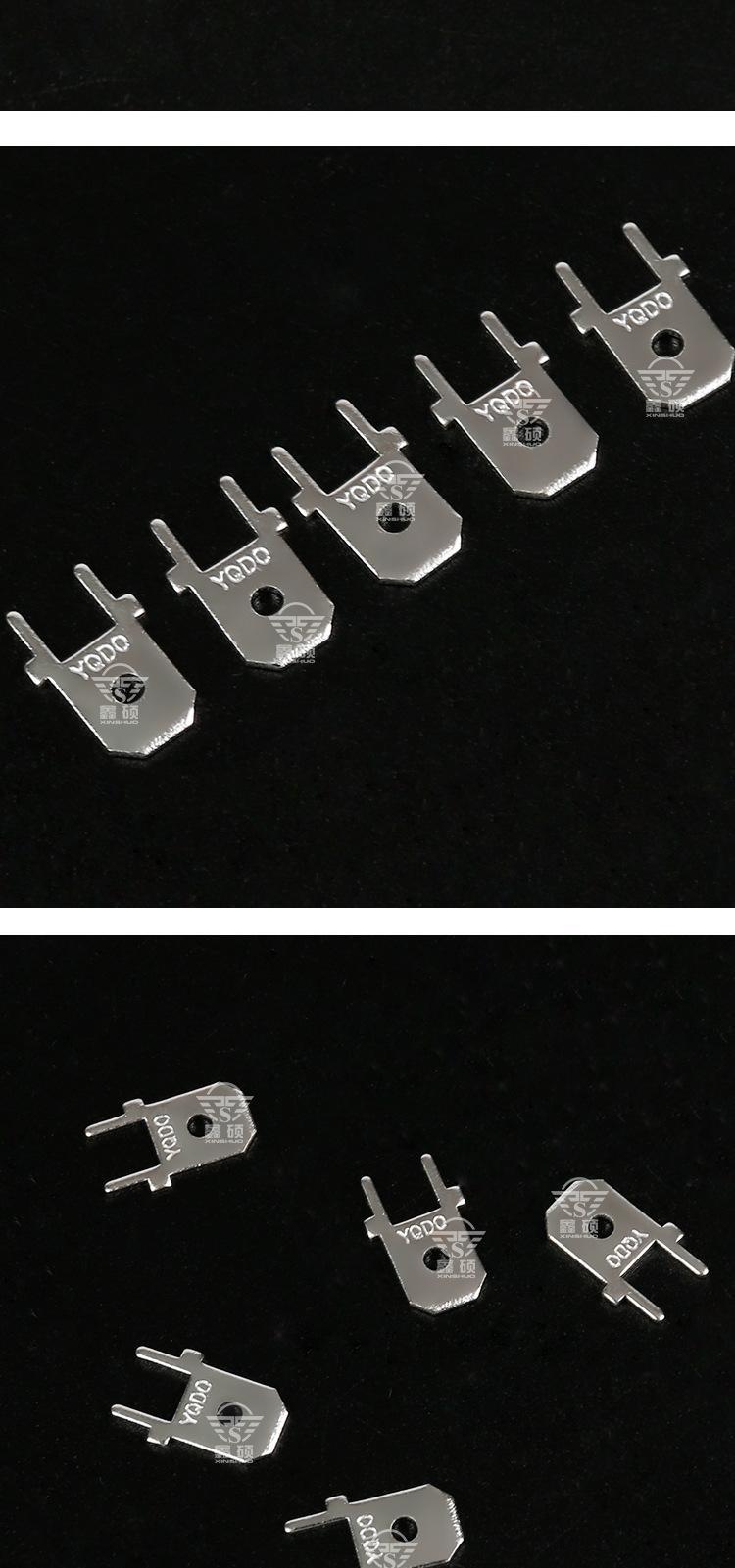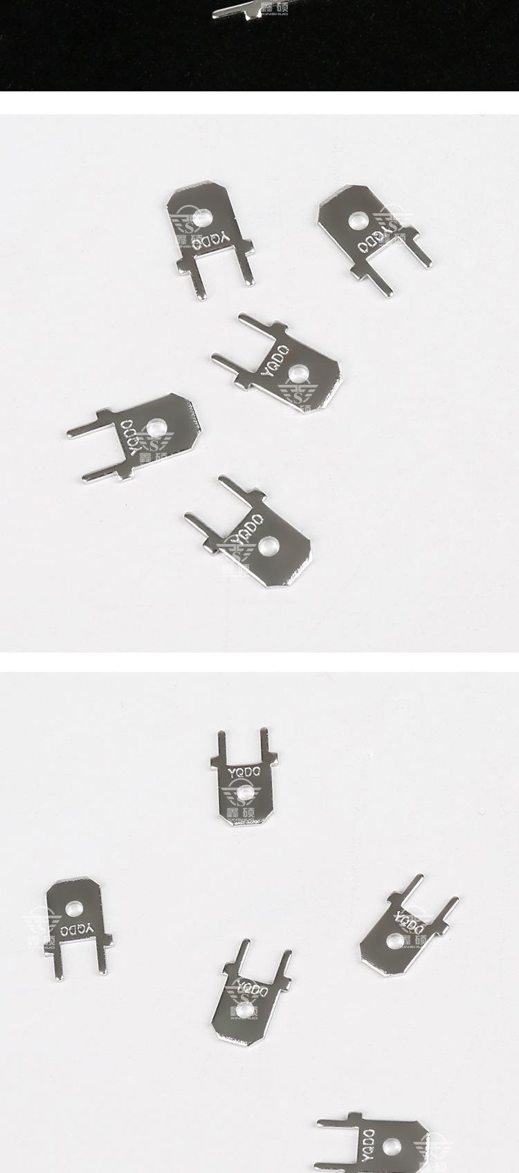 ? ? ? 厂家直销PCB焊接插片、PC板接线端子、弹片及各种物件冲压件。可根据客户要求定做其他规格产品,量大可以免费开模。质量保证,欢迎咨询洽谈。