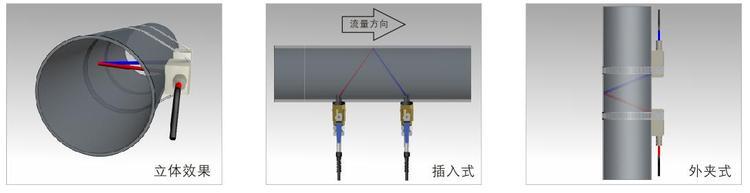 V型安装方法适用管径范围:25mm~400mm(同侧,不应在管道顶部或底部安装选点