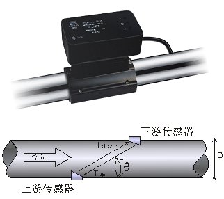 超声波流量计及分析仪采用时差方式的测量原理。它利用传感器发出的超声波在流动着的流体中的传播,顺流方向声波传播速度会增大,逆流方向则减小,在同一传播距离就有不同的传输时间,根据传输时间之差与被测流体流速之间的关系测出流体的流速。流体的流速在管内的不同位置是不同的,其管中央的流速要比靠近管壁的流速快。流体在管道中的流速分布可以用流速截面分布图表示。通过对流量计的设置,并考虑流速的截面分布影响,从而可以计算出平均流速,再根据管道的截面积得出流体的体积流量。