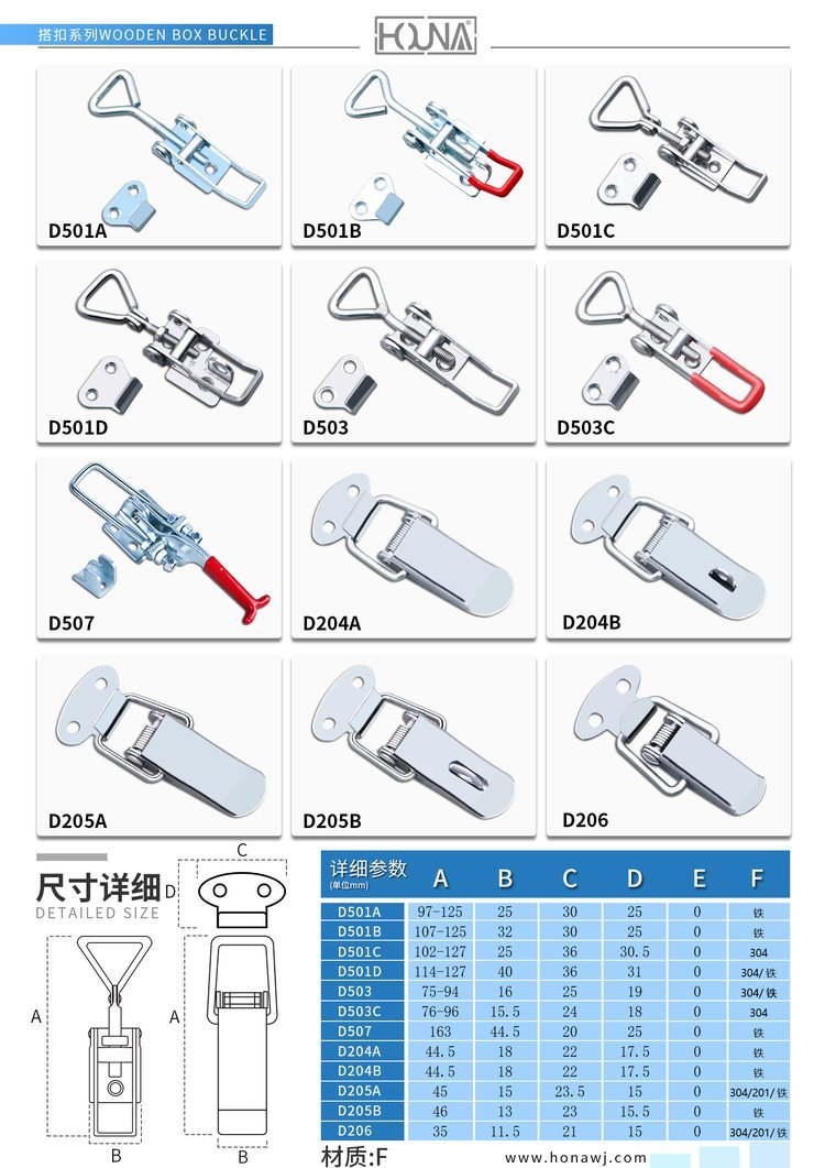苏州华纳机电有限公司作为一家经营多年的箱类配件厂家,是国内一家研发与生产箱类五金配件公司,主要生产蝴蝶锁扣、搭扣、拉手、包角、木箱整套配件等等,箱类五金配件为主体的品牌。专注为客户提供箱类解决方案;不断提供配套产品。品牌有五大产品——蝴蝶箱扣、搭扣、包角、合页以及拉手。