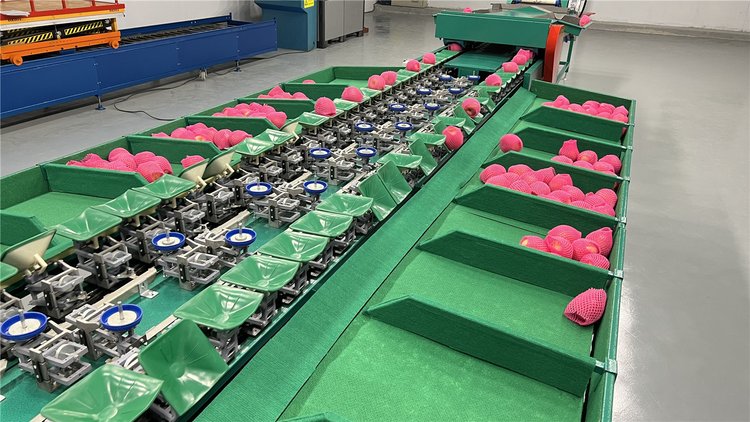 分选速度:15000个/小时(6-8吨贝贝南瓜、苹果、火龙果、马铃薯、不知火、桃子、柑桔、西红柿等/小时);