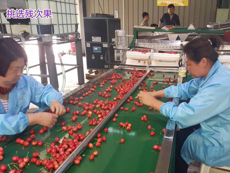 水槽上料、人工残次果挑拣、水洗 、预冷 、分级、风干(风刀吹掉表面残留水珠,不影响樱桃鲜度)、分拣包装。(不配套预冷机)