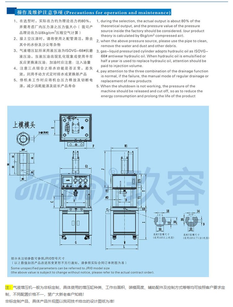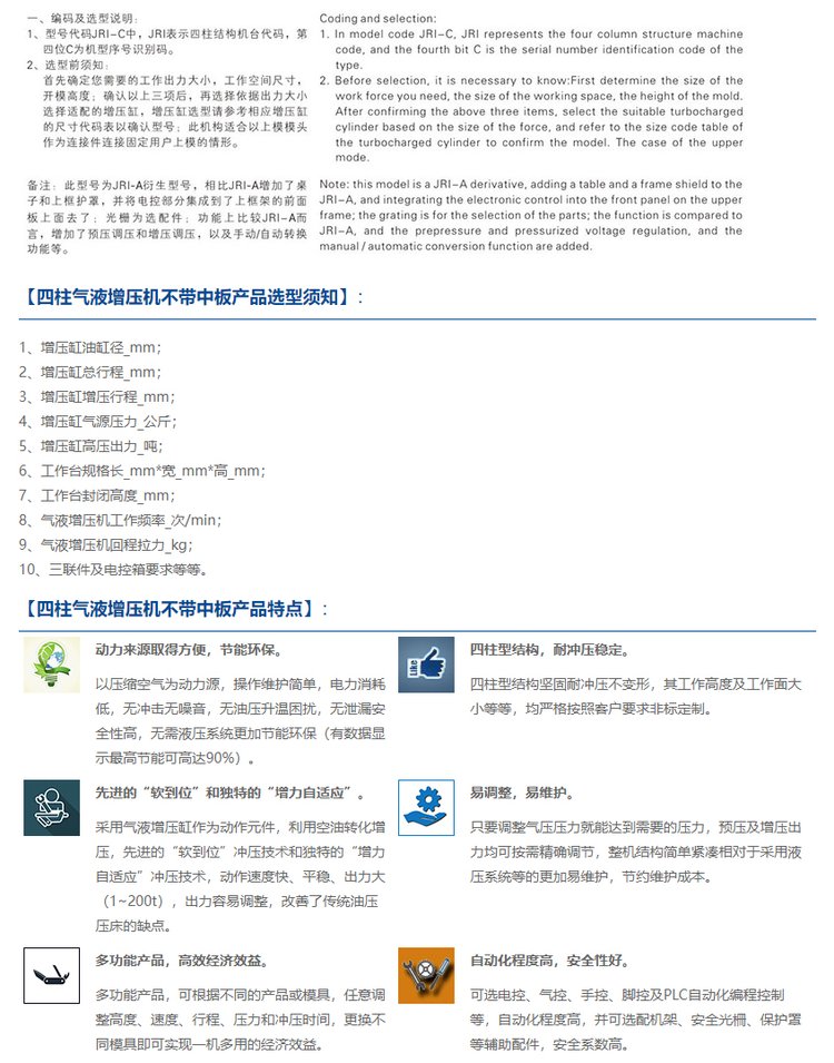 JRIC四柱气液增压机不带中板非标定制质量保障