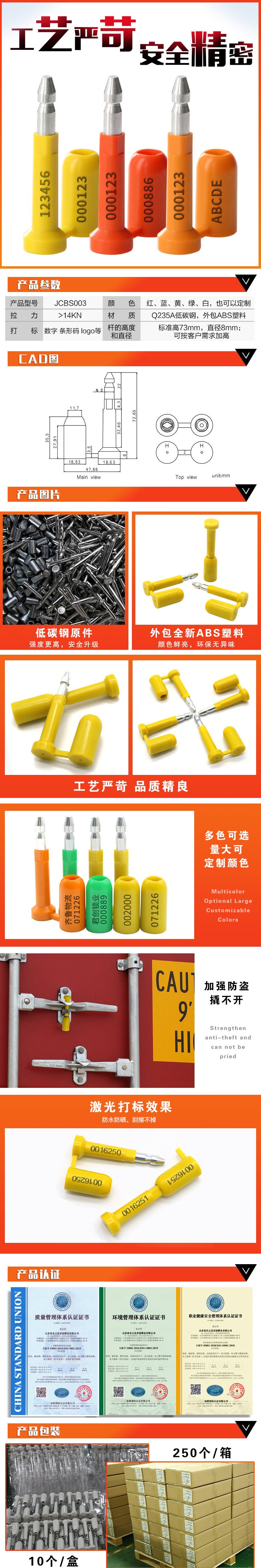 | 功能用途 | 集仪表铅封、一次性封条、高保封、电子铅封、塑料扎带、GPS定位封、周转箱等产品的研发、设计、生产、销售为一体 | ||