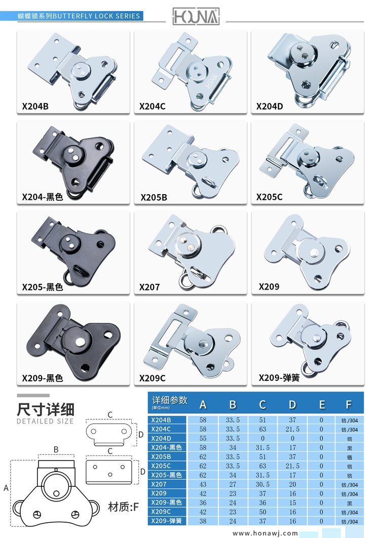 HOUNA/华纳 黑色中平锁芯航空箱搭扣箱扣蝴蝶扣木箱箱扣厂家直销 蝴蝶箱扣 医疗箱搭扣 环形锁扣? X204-黑 湖州