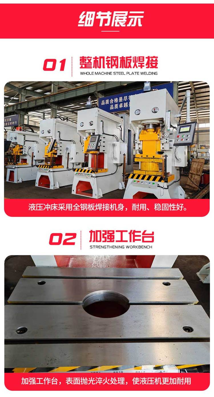 山东威力重工生产的液压冲床目前主要分为导柱板式和导轨冲头式两种,两者其在广义参数上区别不大,但是导轨式冲床采用的多面体导轨冲压精度上优于导柱式,价格也要略贵些,具体根据客户实际需求选择!
