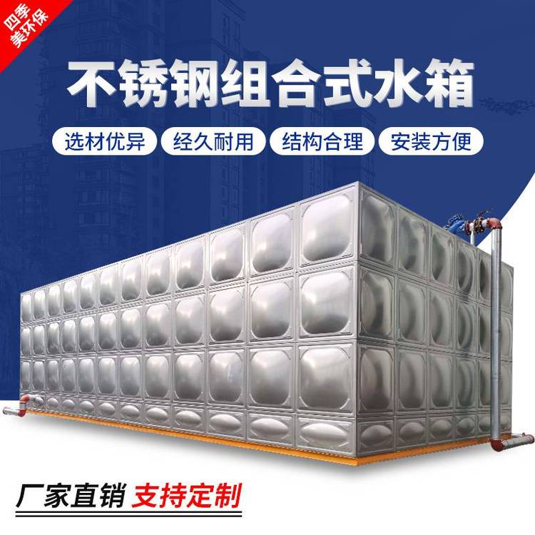 不锈钢水箱常见的有不锈钢消防水箱,方形组合式水箱、立式圆形水箱、卧式圆形水箱。采用SUS304、SUS316L、SUS444等不锈钢板,冲压成型。一般冲压成三种尺寸,分别是1x1米、1x0.5米和0.5x0.5米三种,周边用钨极氩弧焊接。