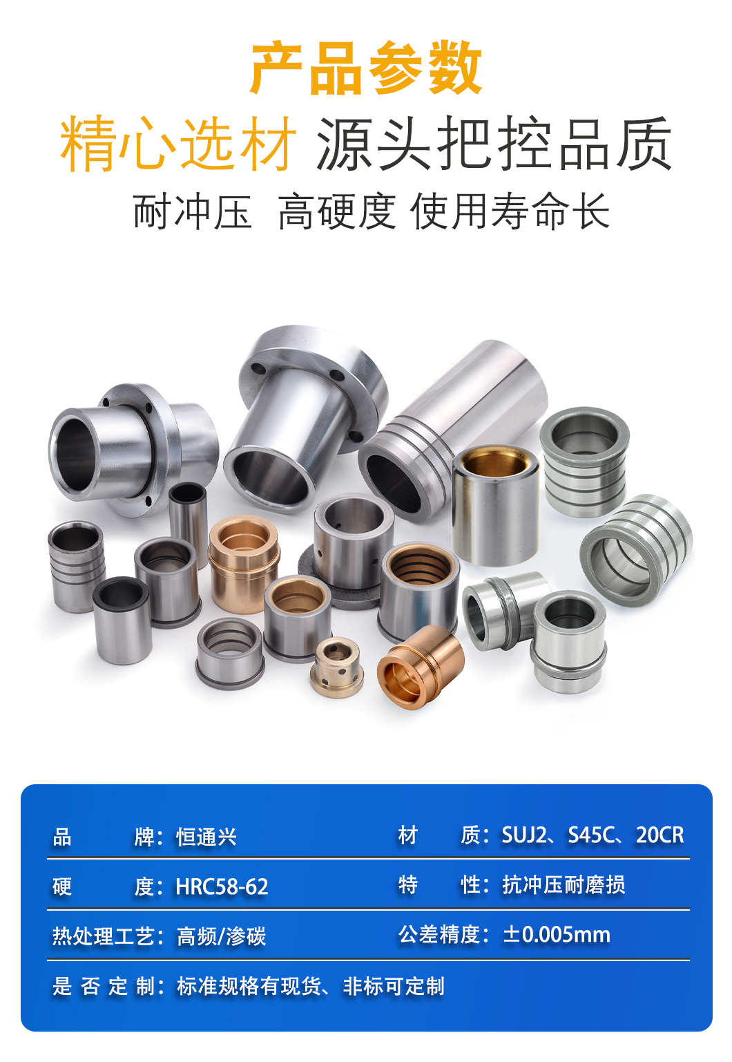 带肩型导套 直身导向套 GA/GB导柱套 恒通兴一站式供应规格齐全 材质SUJ2