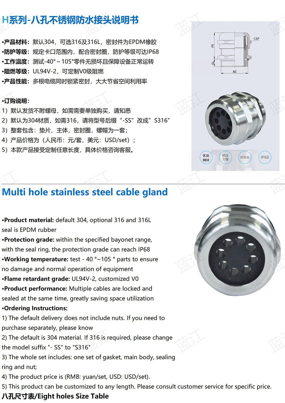 | 功能用途 | 多根电缆锁紧 | ||